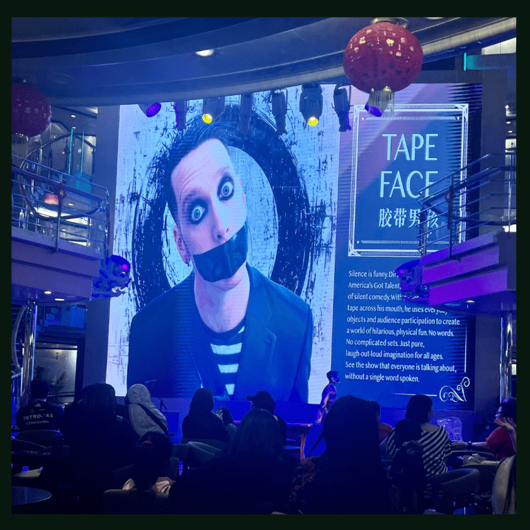 Hannah barely had 5 minutes being back in the UK before she was jetting off to Singapore to join Tape Face on a cruise for a few weeks. Swapping her desk for the decks of a ship, Hannah headed out as artist liaison, getting to know even more about life at sea and the cruise world.